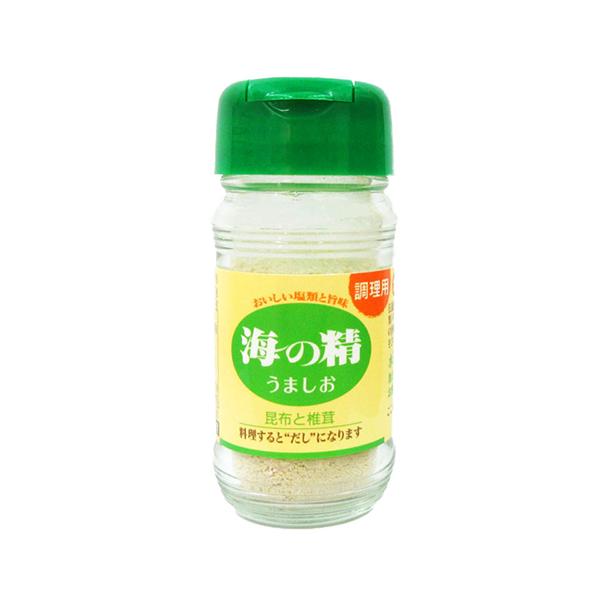 「海の精 うましお」は、「海の精 やきしお」に、天然の旨味あふれる昆布と椎茸の粉末をブレンドした旨塩になります。